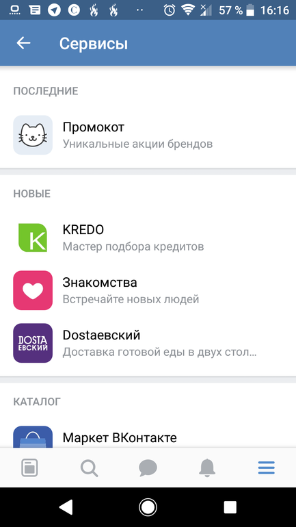 Ясно, блендер в подарок значит не обломится... В приложении вк есть меню "сервисы", оно самоер последнее идёт в разделе меню. Выглядит так
