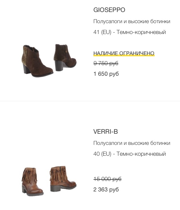 Интернет-магазиныПосмотрите подборку -25% экстра, в разделах высокие ботинки/полусапожки. Много неплохих скидок, к которым ещё в корзине добавляется -25.