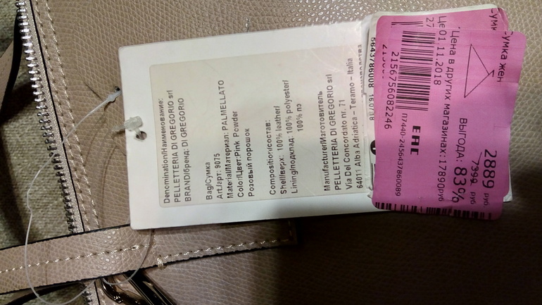 Я не спорю, это итальянский массмаркет, но вот такие лого с названием они пришивают к сумкам, мне вернули его на место: