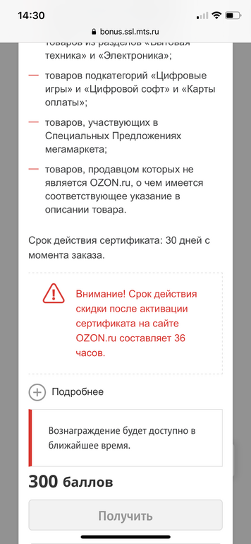 Вчера пыталась оформить этот сертификат в Озон, бонусов было больше трех тысяч. Но ничего не получилось. Позвонила на горячую линию. Сказали с сентября Мтс бонус программа закрыта. При том что вся информация о мтс бонус и сертификаты на сайте висят, на что оператор предлагает сделать скриншот и отправить в службу поддержки, как не соответствующая информация. Так что девочки, если у кого то получилось оформить сертификат за бонусы мтс пишите. PS не путать с Мтс кешбек