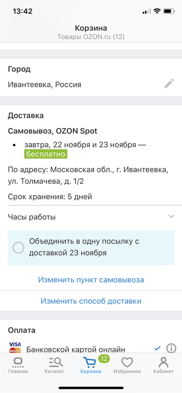 Интернет-магазиныУ озоне теперь несколько складов. Поэтому теперь заказы делятся на несколько посылок будь то курьерская доставка или в пункт самовывоза. Соответственно если в пункт самовывоза заказываешь, то платишь за 2 посылки (ну если конечно заказ на на сумму большую, то бесплатно). Если курьер, то 2 раза будешь встречать курьера. Отталкивает такой расклад...