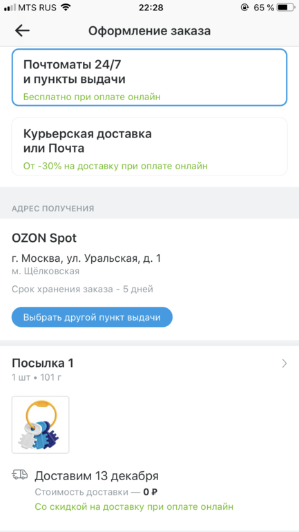 В Москве при оплате картой на любую сумму бесплатная доставка в озон бокс. Позавчера на 300 рублей заказ был
