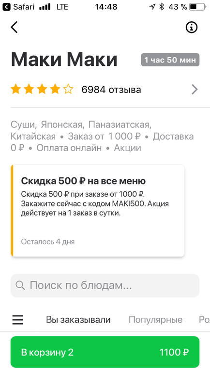 У кого в деливери клаб доставляет этот ресторан, в личных акциях ресторанов иногда выскакивает скидка 50%, очень приятная)