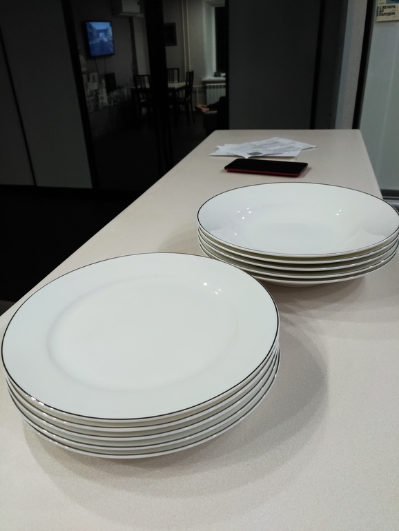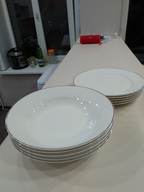 Тут в комментари своем же написала про тарелочку с серебряной каёмочкой, неспроста, ох, неспроста! История эта началась в далёком 2007 году... когда на свадьбу нам родители подарили посудомоечную машину. Жаль, конечно, что в комплекте не шла квартира с большой кухней, поэтому посудомойка уехала жить в гараж. И вот оно свершилось! Чудо! Возвращение блудного попугая *зачеркнуто* девайса! Поставили мы посудомойку на нашей кухне нынче, но радость наша была недолгой. Оказалось, что мыть в ней нечего. За 11 лет семейной жизни из приданого в житье осталось штук шесть разномастных тарелок и все. И пришла мне в голову шальная мысль - барабанная дробь!!! - купить тарелки! Пошла в магазины, рыдала от несоответствия желаний и предложений. Пошла в интернет, рыдала от невозможности пощупать и узнать реальные ТТХ предмета. Два месяца ушло у меня на поиск идеальных тарелок. Нашла на озоне, спасибо ему, его промокодам, спасибкам от сбербанка и моим друзьям, подарившим мне сертификат в страну Оз. Да, я купила их и они прекрасны! Я вам покажу их сейчас.