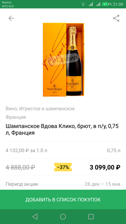 Если шипучка-Мондорище 1000 стоит, почему бы не купить вдову за 3. Если считать в евро - хорошая цена. Раз в год можно и разориться.