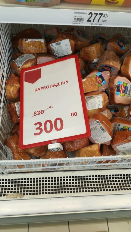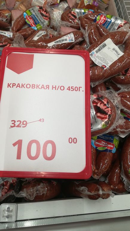 Скидки и акции (для всей семьи)Колбаса Краковская по 100 руб за штуку. Срок годности по 7.01. Карбонад по 300 рублей за 1 кг. Срок годности по 9.01