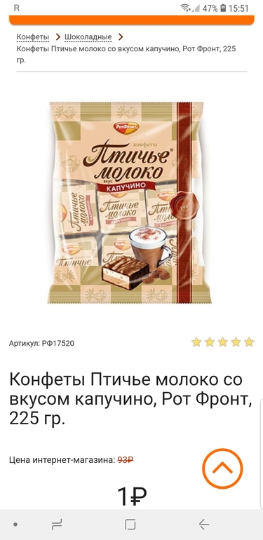 В интернет магазине Аленка конфнты Птичье молоко за 1р.