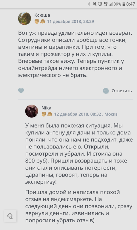 Но присутствовала, в том же пункте выдачи, народ без заморочек особых возвращал.