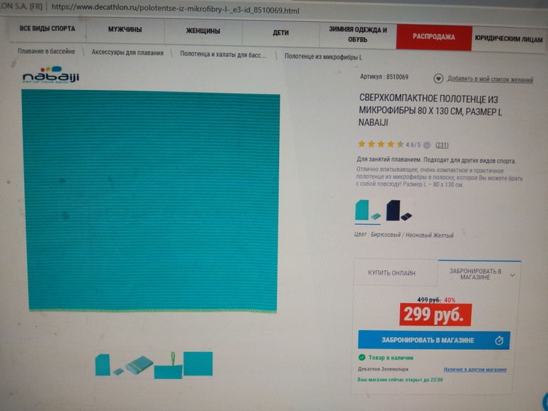 При "купить онлайн" цена 399 со скидкой, при "забронировать в магазине" цена 299 становится.