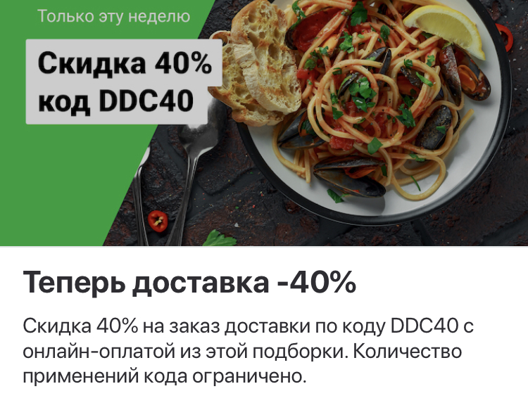 Оксана в Выбор товаров и услуг для дома и семьи 7 лет Страус скидка 40% Скидки (покушать) Выборка разная в зависимости от адреса. Посмотрите еще 20 записей на эту тему Отменить Ответить belcanta У меня не работает код, даже по ссылке из приложения( 18.02.2019 Ответить Оксана На стадии оформления в корзине не даёт скидку? 18.02.2019 Ответить belcanta Пишет не работает промокод перед оплатой. 18.02.2019 Ответить Надя (Мебель на заказ ) А ссылку можно на рестораны 18.02.2019 Ответить Оксана Нужно в приложении смотреть выборку по Вашему адресу. Вверху баннер с акцией, в случае, если адрес «попал», как я поняла. При нажатии на него все предложения открываются. 18.02.2019 Ответить Оксана Вот ещё нашлось в Шоколадницу и ВабиСаби 18.02.2019 Ответить Якитория ролл Филадельфия в подарок к заказу Теле 2 и Яндекс.Еда Чаты Беременных Выберите чат: Январята-2026 Февралята-2026 Мартята-2026 Апрелята-2026 Майчата-2026 Июнята-2026 Июлята-2026 Августята-2026