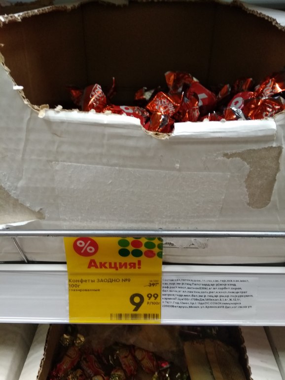 Смотрите внимательно на конфеты. Были клубника со сливками срок подходит у концу с хорошей скидкой. И эти уже просрочены