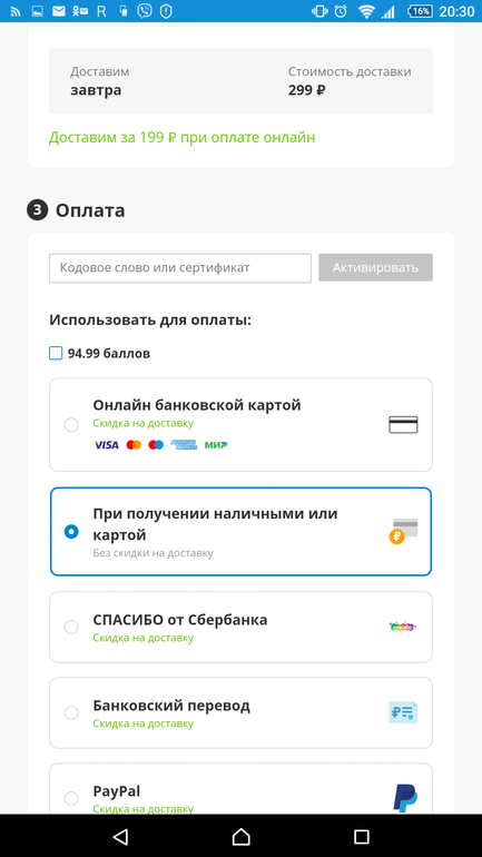 Вот только сегодня утром оформляла заказ на 4000. Скооперировались с подругой. Спешила очень, т.к. нужный товар оставался в последнем экземпляре, а мне срочно надо было уходить. Доставку посчитали при онлайн оплате 299 руб в ОзонПорт, а при оплате на месте...897 р.