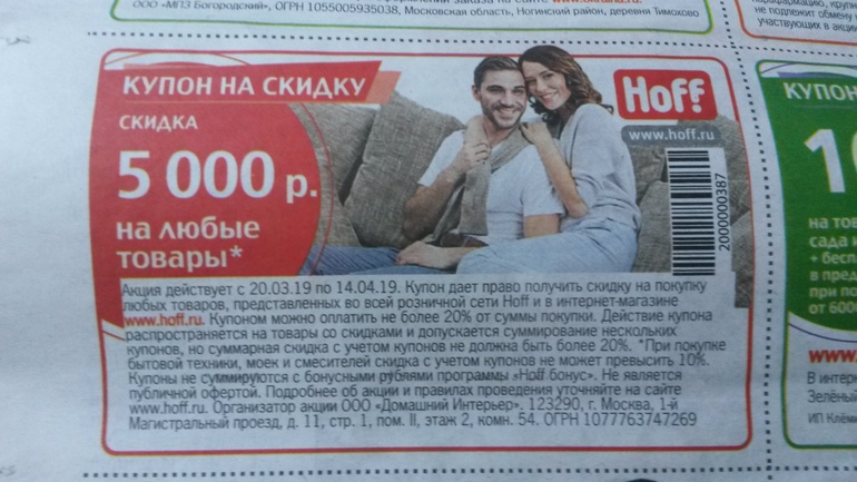 Всем привет! подскажите, пожалуйста, как можно сэкономить в Хофф. Планируется покупка на 15 000 руб. Может где купоны раздают....