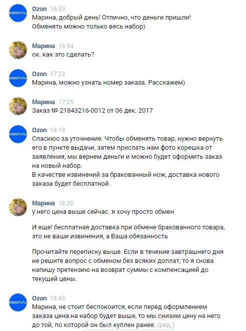 Девушка молодец. У нас тоже хорошая, связывалась с менеджером Озона, тот отказал. Видимо, с осени клиентоориентированность скатилась.