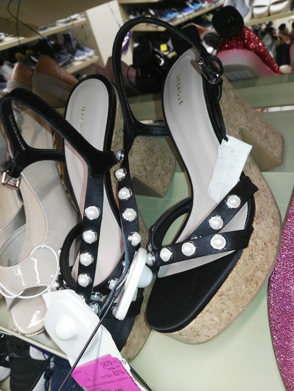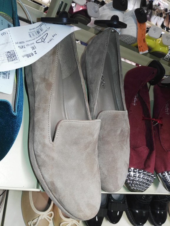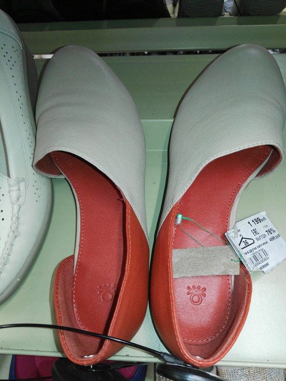 У нас в одежде единичные экземпляры Патриция Пепе, Васса и даже Твинсет. Бенеттон летняя женская одежда, платья, блузки, туники. После переоценки неплохие мужские пуловеры по 399 руб. Тру-трусарди и jasper, c хорошим составом 100 % шерсть и 45% шерсть + 10% кашемир. За такую цену очень даже неплохо. А то все цены как-то совсем не фамильные. Остатки посуды IVV, тарелки из серии витамин, банки и салатники. Обуви, как у Вас, не видела.