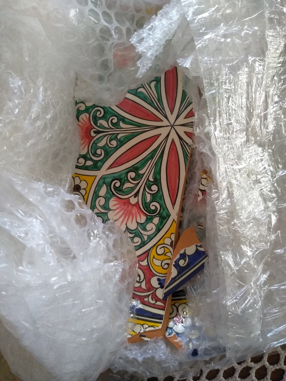 Пришла разбитая посудина, помятая коробка с пазлом. Но горничные порадовались, что мы перестали засирать мусорку коробками))