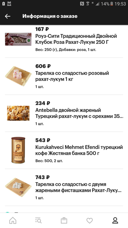 Мне приехал нормальный лукум и заплесневевший кофе. Килограммовый пакет с кофе пришлось выбросить.