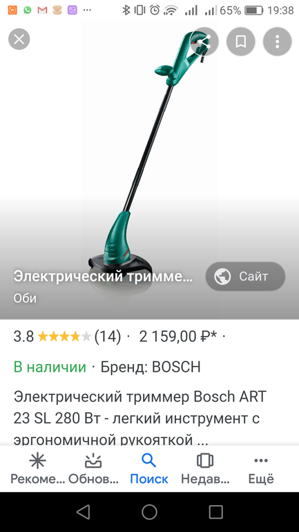 На Оз полезла первым делом, а там мало газонокосилок, а у тех что есть в разумных ценовых пределах (примерно 5000), отзывы плохие...