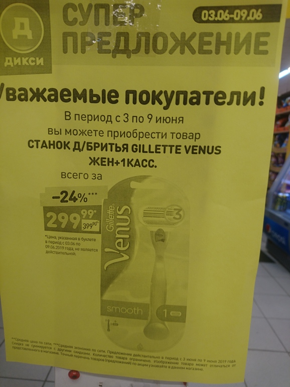 Девочки, кто нежно любит станки Venus, в Дикsи сегодня замечена суперцена на станок с 1 сменной кассетой. Висят на кассах в специальных боксах. В каталоге на них заявлена скидка 74 %.