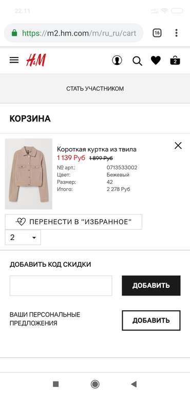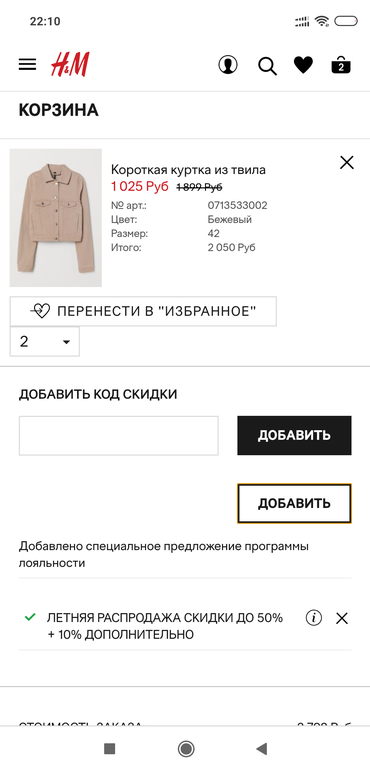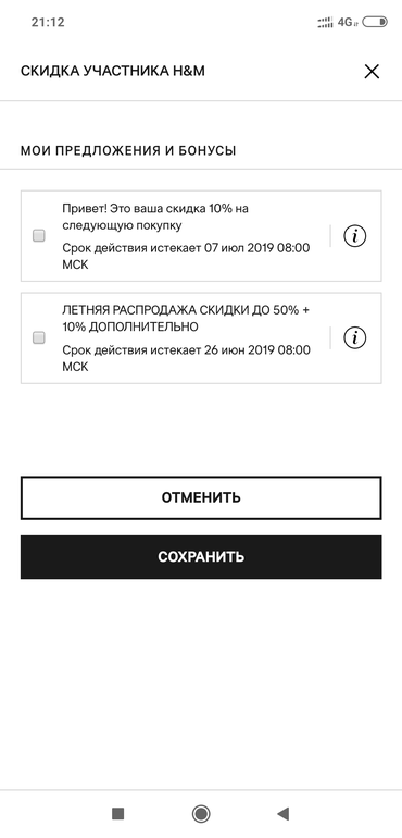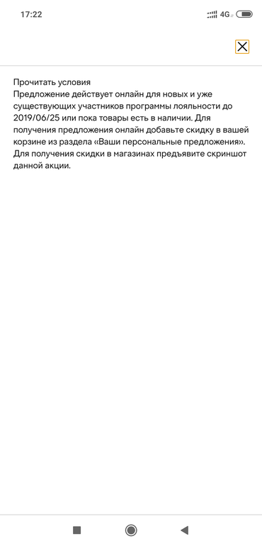 Aaygul в Выбор товаров и услуг для дома и семьи 6 лет Дополнительно 10% на распродажу ХМ Скидки и акции (для всей семьи) Онлайн и оффлайн Посмотрите еще 20 записей на эту тему Отменить Ответить Юлия У меня прошла только на нераспродажное 23.06.2019 Ответить Aaygul У меня всё работает: В корзине нажимаете кнопку Добавить напротив Персональное предложение И добавляете. Цена меняется на распродажу Без скидки цена: 23.06.2019 Ответить Юлия Сработало, спасибо. До этого тоже самое нажимала, не было такого. 23.06.2019 Ответить Марья а как она работает? у меня что-то цена не меняется. 23.06.2019 Ответить Aaygul Я на кассе применяла, онлайн надо посмотреть 23.06.2019 Ответить Aaygul Вообще написано применить скидку из раздела Персональные предложения 23.06.2019 Ответить Марья спасибо, да, я нашла уже 23.06.2019 Ответить Озон. Кэшбэк 400 баллов при покупке на сумму от 1500 рублей Яндекс музыка Чаты Беременных Выберите чат: Январята-2026 Февралята-2026 Мартята-2026 Апрелята-2026 Майчата-2026 Июнята-2026 Июлята-2026 Августята-2026
