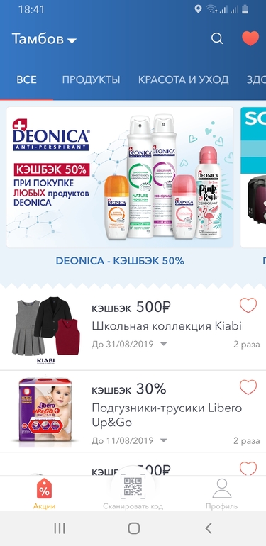 Косметика, ГигиенаВ магнит-косметик скидка 2=1 на дезодоранты деоника, а в иншопер 50% кешбек. В итоге дезодорант получается по 37.5