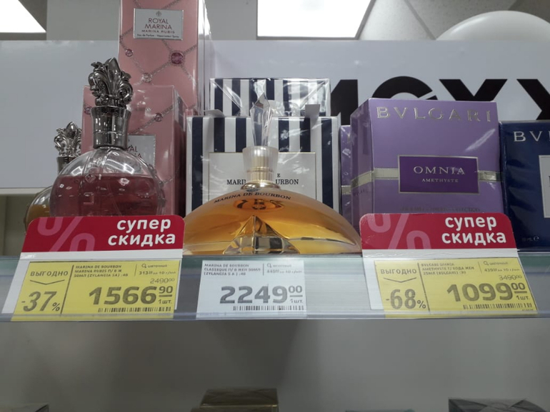 Проверяйте свои магниты. Я регион. Живу в опе мира. В косметике скидки на парфюмерию уже дней 10, выборочно, на фото уже остатки. Висело объявление в связи с тем, что выводят позиции из ассортимента. Кроме парфюма много на что еще есть хорошие скидки. Видела простыни детские на резинке со скидкой 91% за 38 руб, зашита на спинку сиденья водительского от детских ног руб по 70, лампы светодиодные 15 Вт по 69 руб, посуда и пр...