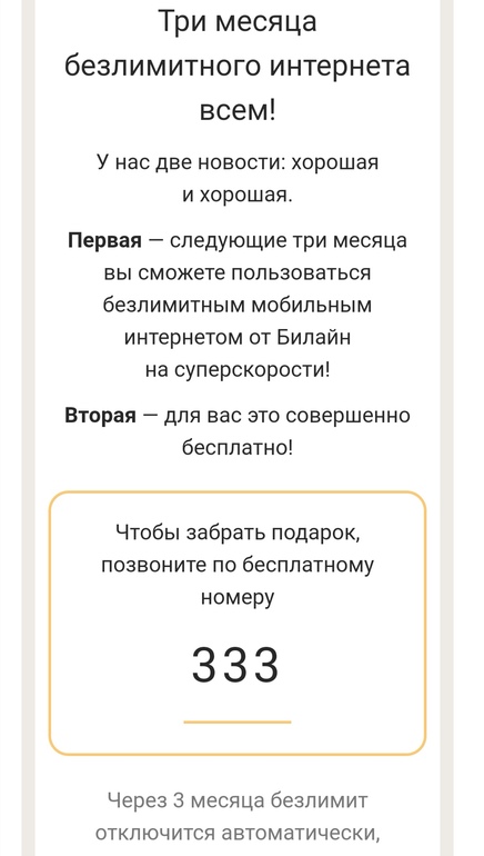Билайн 3 месяца безлимитного интернета.