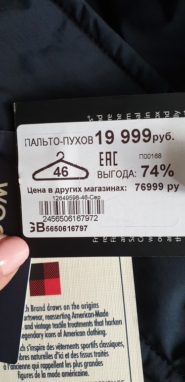 а у Вас кстати, чье производство? Что написано на ценнике Фамилии и вшивной бирке? На моем - Вьетнам. Но их отшивают и другие страны.