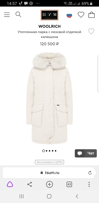 Купилась сегодня очень неожиданно и нежданно, но пройти мимо я не смогла она очень крутая(парка WOOIRICH!Для примера цена в ЦУМе