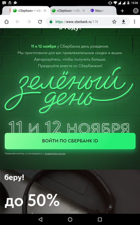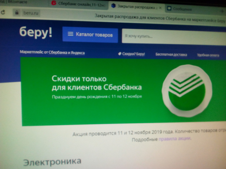 Я поняла, у меня никак не отображается на сайте, что я пришла по ссылке из зеленых дней. Дает только скидку по купону. Покажите кто-нить как выглядит с компа на сайте беру обозначение акции сбера?