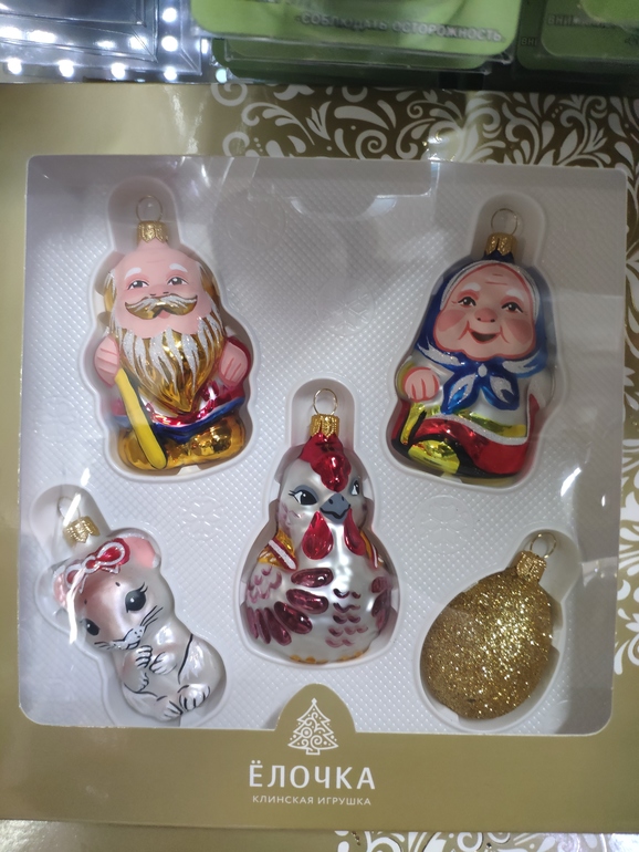 Наборы коллекционные красивые,но цена..! А обычные клинские игрушки я не очень люблю-толстоватые и грубоватые,на мой вкус,ручной росписи мало. От Елочки покупаем в основном однотонные матовые шары и сами расписываем. Хотя вот сейчас посмотрела,и мне очень понравились бусы. Куплю,возможно,к нам на предновогоднюю ярмарку всегда Елочку эту привозят