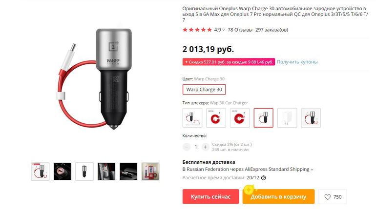 просто это оригинальная под телефон oneplus. эти телефоны с технологией технологией быстрой зарядки. соответственно и автомобильная зарядка под него тоже быстрая. заражает за 30-40 минут полностью телефон.