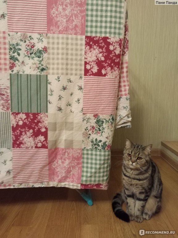 Да и с размером я не угадала(взяла огромное, а у меня кровать 160 на 220),пэчворк к слову 220 на 240,но засчет подушек под ним,смотрится компактно и края до пола не свисают.