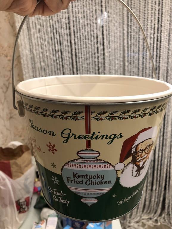 Мы только показываем ведро. Никогда его не брали и не ставили в него ничего.