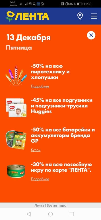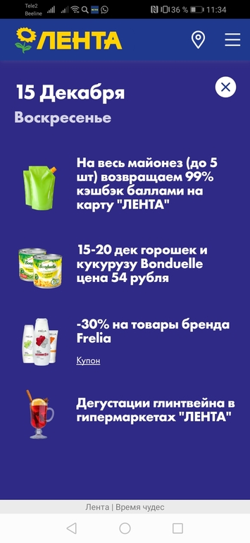 Скидки и акции (для всей семьи)Обращайте внимание, в воскресенье 99 процентов кэшбэк за майонез 5 банок. То есть бесплатно.