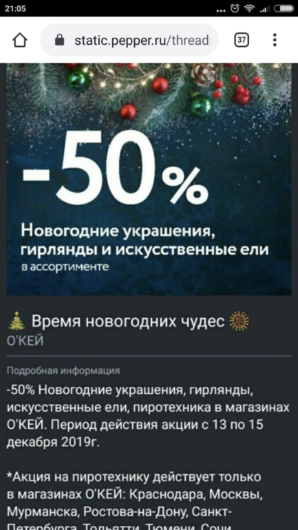 Окей 50% на новогодние игрушки,елки,товары,гирлянды,пиротехнику