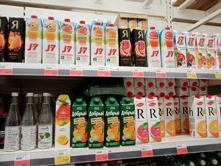 6 упаковок сока J7 по 89-90 или почти 540 руб.