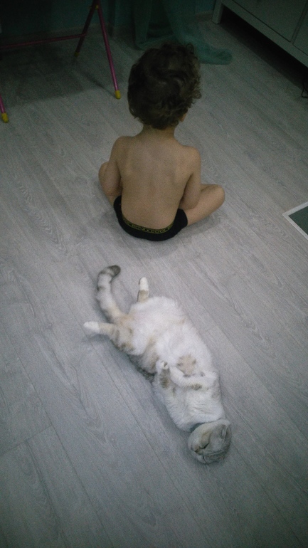 Дописала, решила на кухне пол помыть им. Сын заорал, что громко и ушёл, бросив мультики свои. Кошка молча смылась.