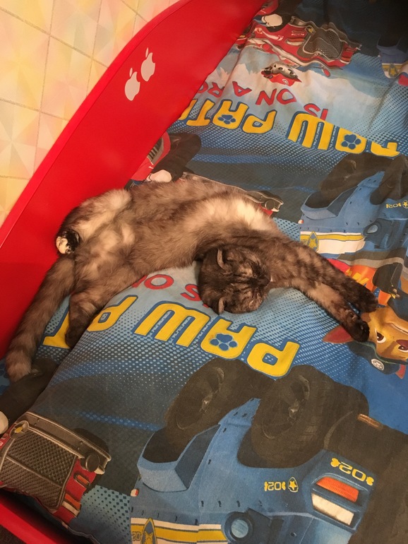 У нас тоже кровать себе кошка "прихватизировала"). Сын, правда, после переезда 1.5 месяца отлично в ней спал, пока я не совершила ошибку - в гостях одну ночь с ним вместе поспала - теперь опять со мной спит. Устала бороться...даже если укладываю в его кровати, ночью прибегает.