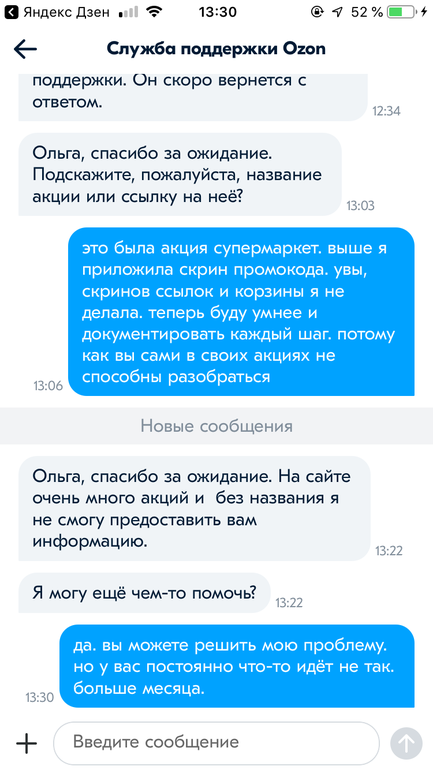 Так, только на этом форуме, почти ежедневно, появляются темы об обмане магазином Озон. Как назвать то, что делает Озон: вы заманиваете клиента одними правилами акций, клиент вкладывает свои деньги (выполняет условия акции), и вы тут-же меняете правила, по которым клиенту ничего не положено. Как это назвать? Уважением к клиенту?? Не обманываете? Просто Фу магазину Озон за такие вещи.