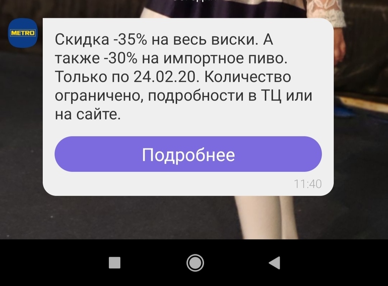 Скидки и акции (для всей семьи)Может кому-то актуально. В метро сегодня скидка 35% на виски и 30% на импортное пиво.