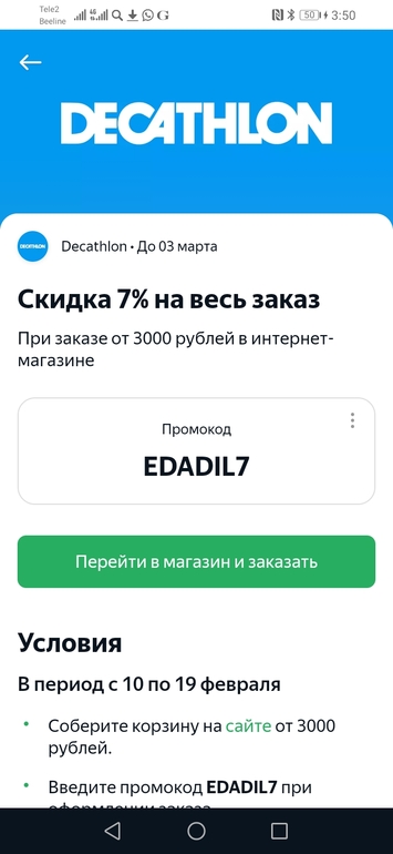 Недавно писала пост, там за покупку батончика скидку на 20% давали в декатлон. Её тоже посмотрите, может ваш товар подходит под акцию