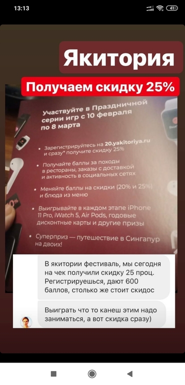 Да, дают 600 баллов, можно поменять на промокод на скидку до 25%, и на доставку и в кафе