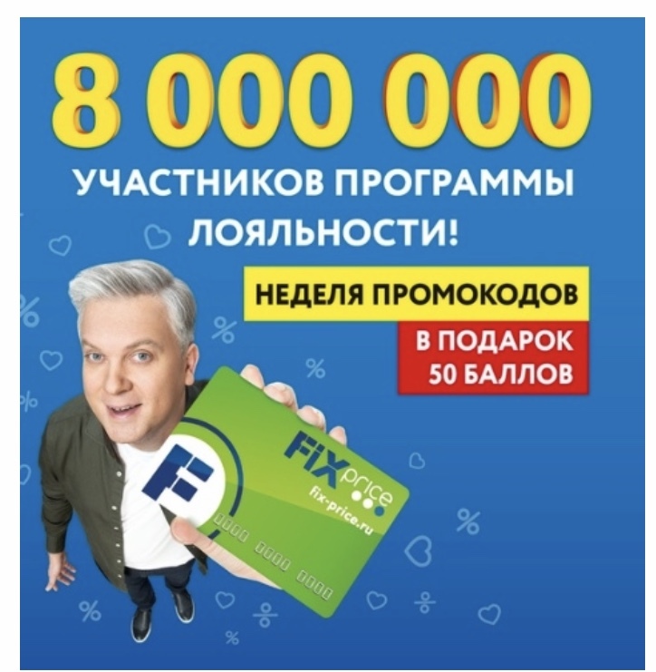Скидки и акции (для всей семьи)FIX332 код 50 баллов на карту.