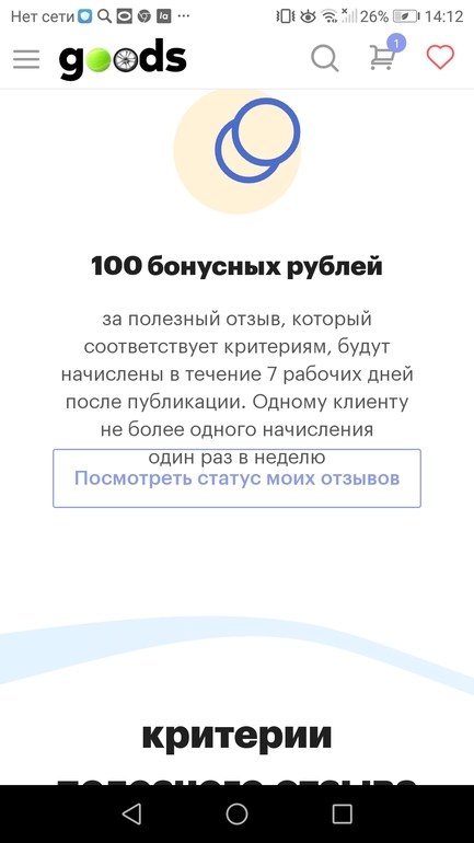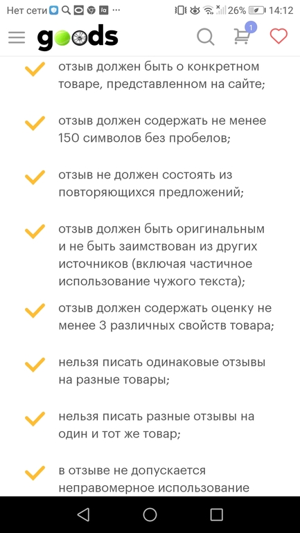 У них на сайте все эти критерии описаны, и вы когда пишете отзыв ставите галочку о том что ознакомлены с правилами публикации отзывов, если вы их не читали - эта не вина Гудса. Хотя минусов у них тоже хватает.