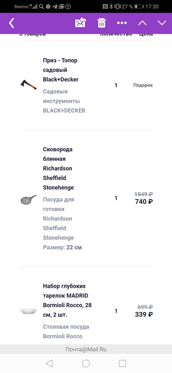 Добрый день! Подскажите вам топор привезли? У меня тоже не отображается в заказе, только количество выбранных товаров но без топора. Как у вас это решилось?
