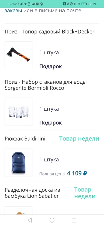 Добрый день Мария! Он у вас в заказе сразу отражался как подарок? Количество товаров в заказе вместе с топором высвечивалось?
