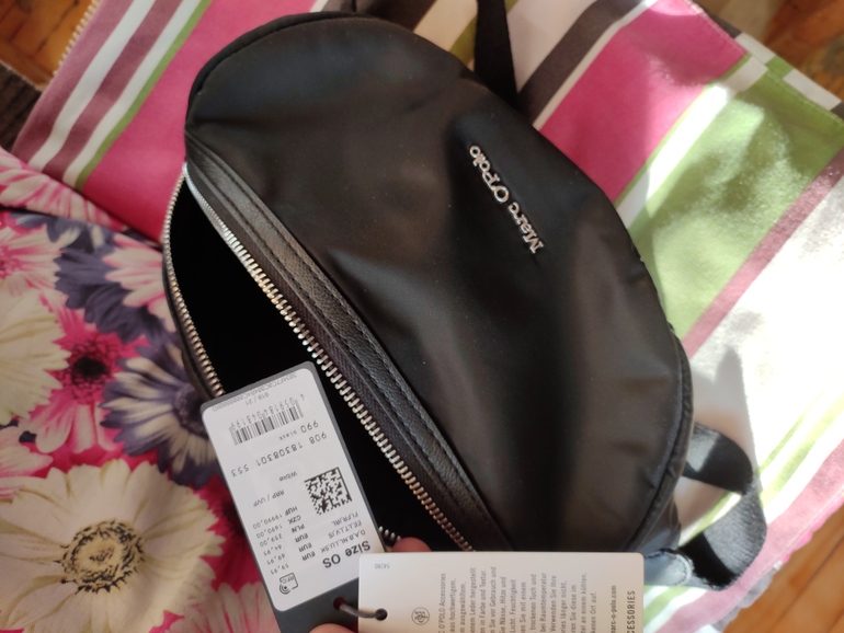 подклад есть, нейлон плотный, пыльник на месте, карабин из металла, кожи 15 процентов) ценник 59 евро