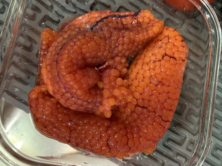 То есть, покупая икорную рыбину, вы платите за икру, получаете в подарок рыбное филе, пригодное только для комбикорма, и еще опцию потратить час своего времени на отделение икринок от пленок ястыка 🤪.