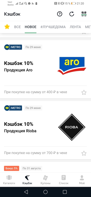 Понравился кэшбэк на Аро и Риоба из Метро, регулярно заказывается через сбермаркет